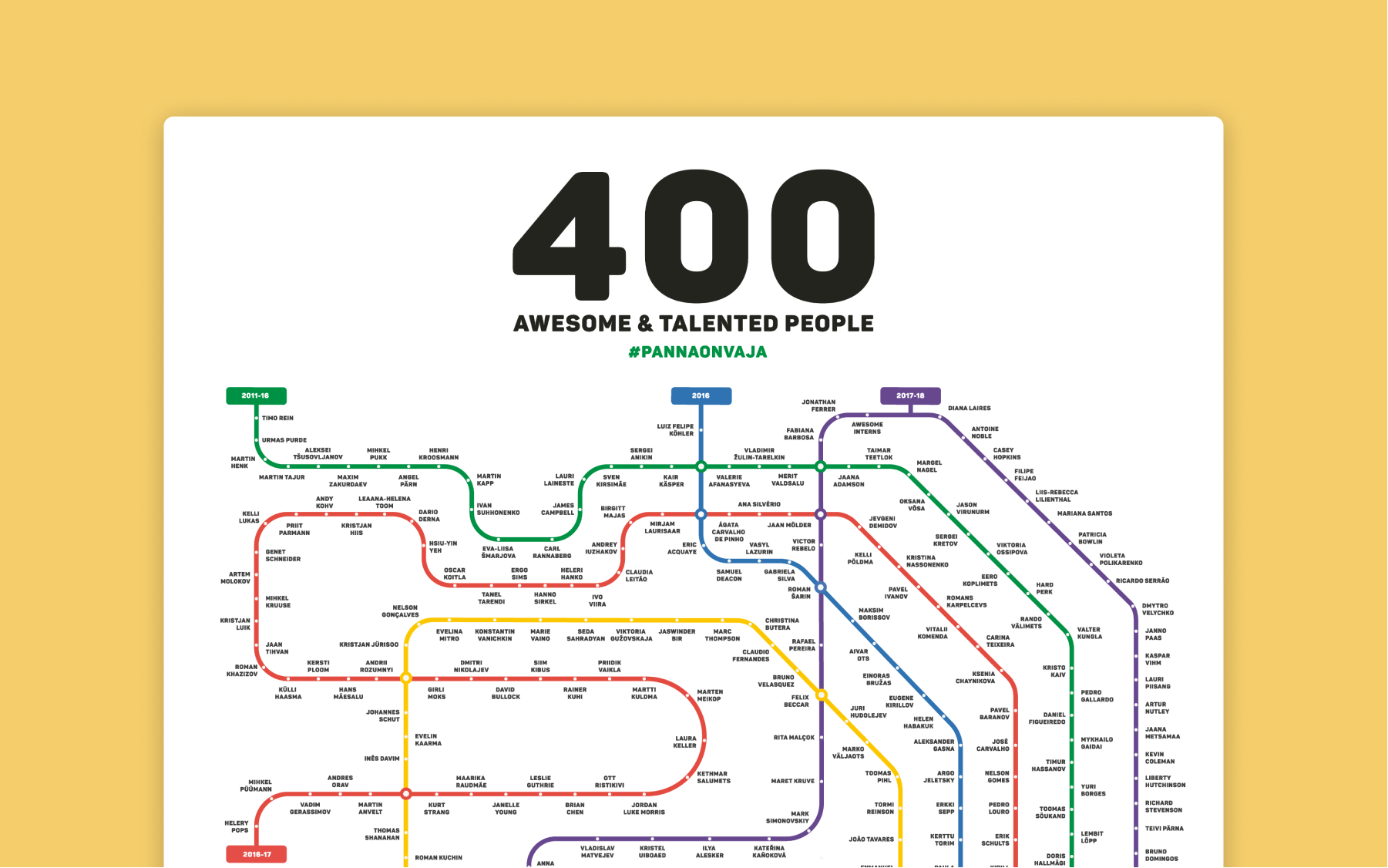 For every 100 employees, we also celebrated this achievements with thematic posters, which are featured on every office hallways and meeting rooms. These posters range from space, transportations, landscape and more - signifying the importance of each employees by engraving their names across the design.