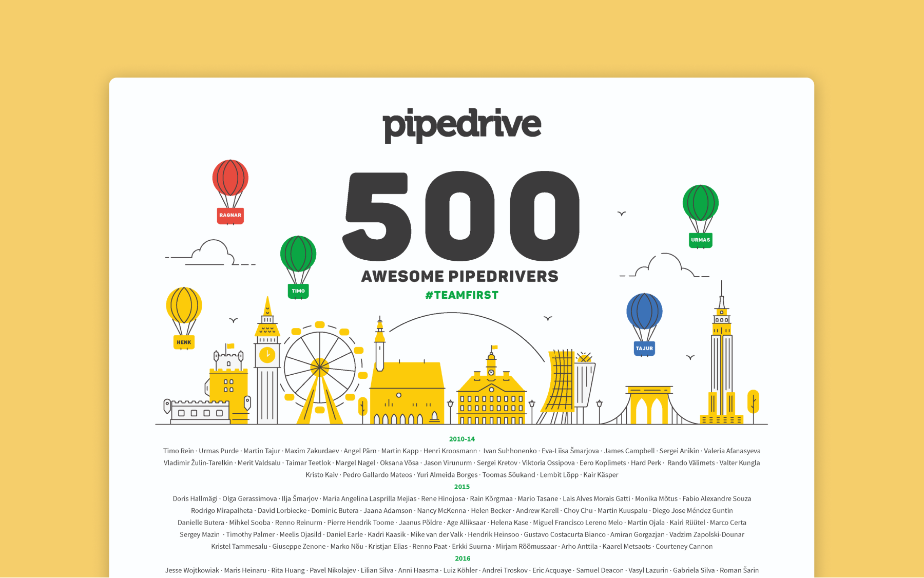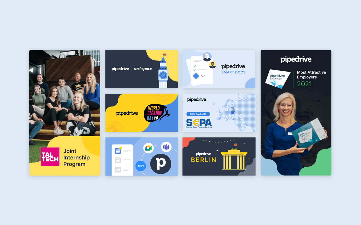 With over 900 employees and 50+ different nationalities situated across 10 different offices, we designed a series of full suite branded swags as part of employee-first culture. As the extension of company branding, these swags are distributed in tech conferences, job fairs & Pipedrive customers - creating a sense of positive brand sentiment & promoting awareness thoroughly.