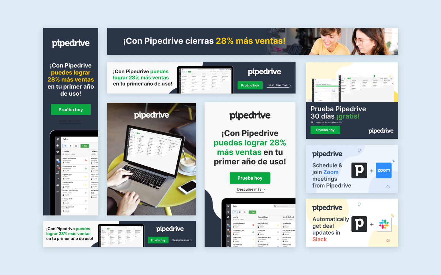 Pipedrive is appealing towards SMB & focuses on the user-friendliness of the product - an aspect that hardly describes larger enterprise-focused CRMs. Most of the performance marketing ads are product-focused on promoting new features, pricing, as well as positioning Pipedrive as a sales tool designed for salespeople. Our scope of work includes paid ads, infographics, social media templates, email drip campaigns and.