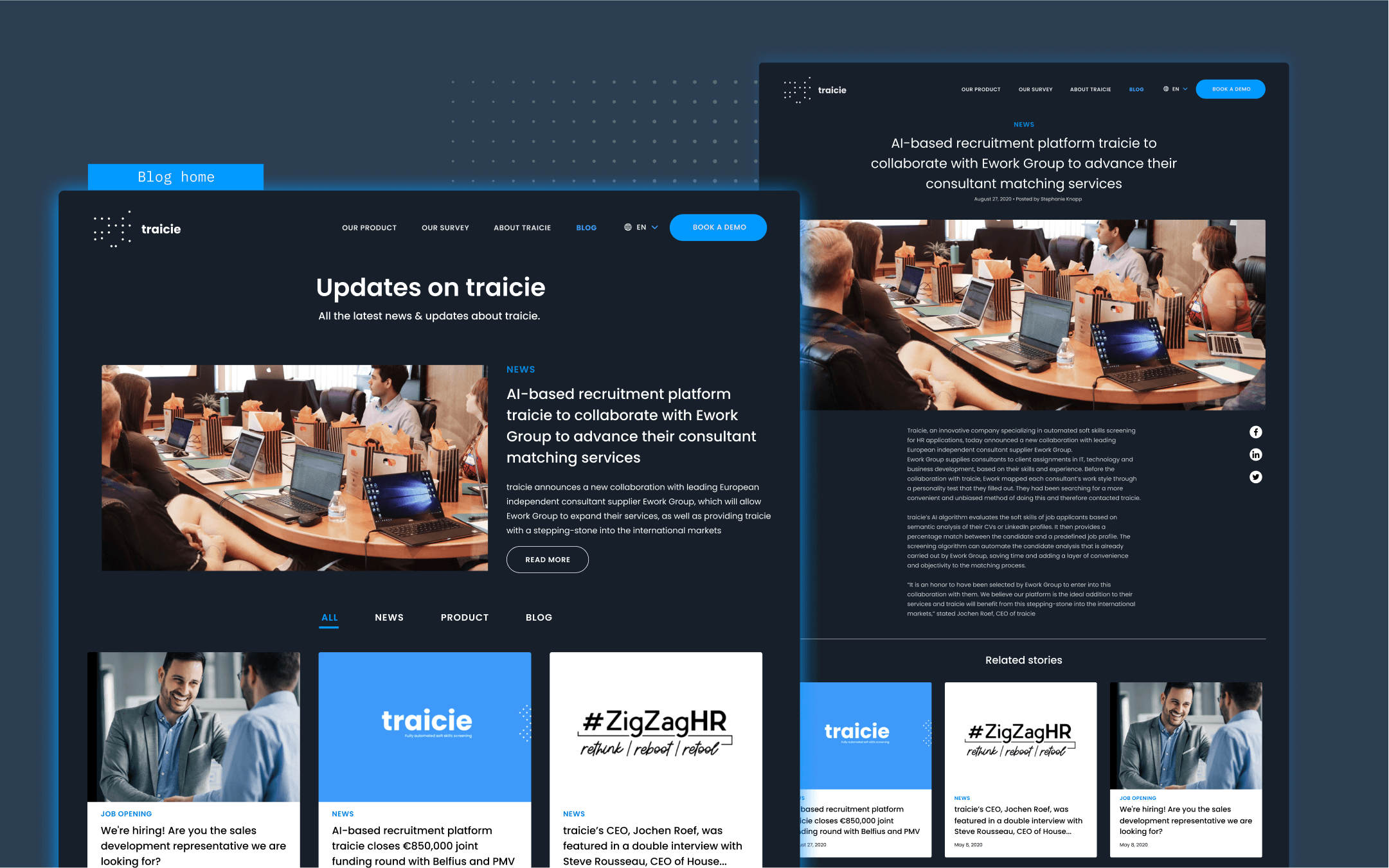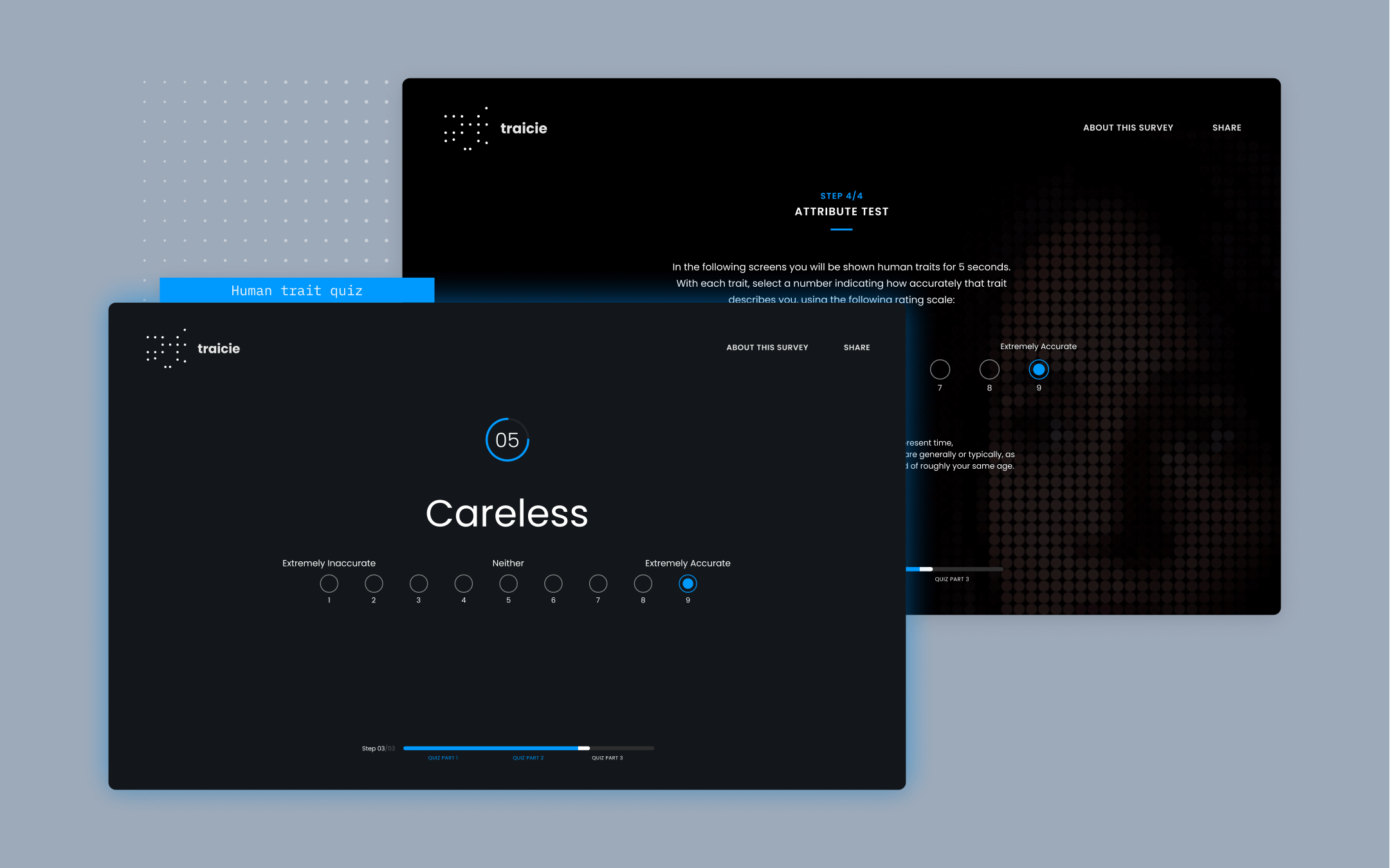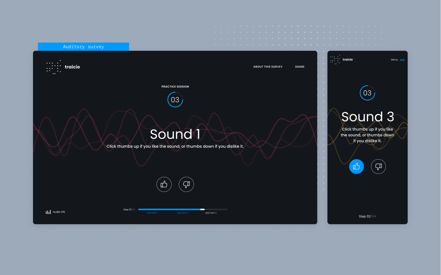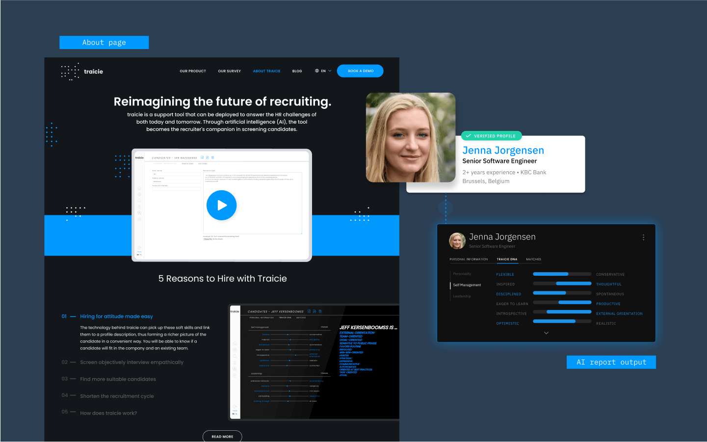 We also helped traicie designed an immersive Data Capture Platform as a research tool to help diversity and inclusion in modern workplace where. The platform contains several audiovisual questions to identify participants soft skills and competence. In exchange, participants will receive a personalized report in their inbox as an insight for their professional growth.